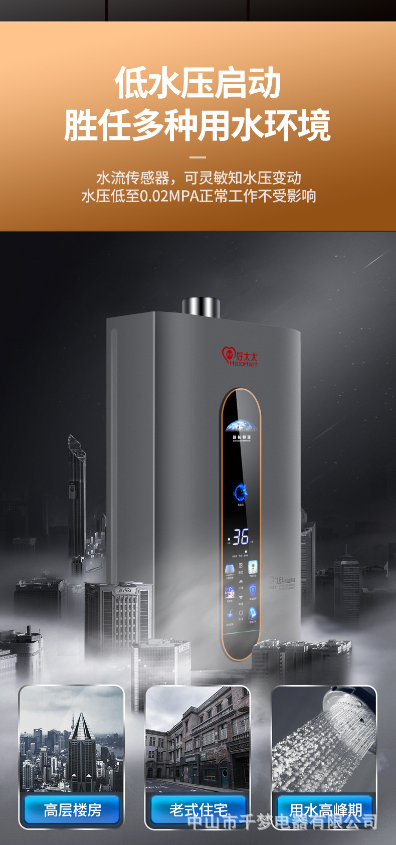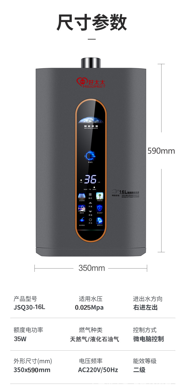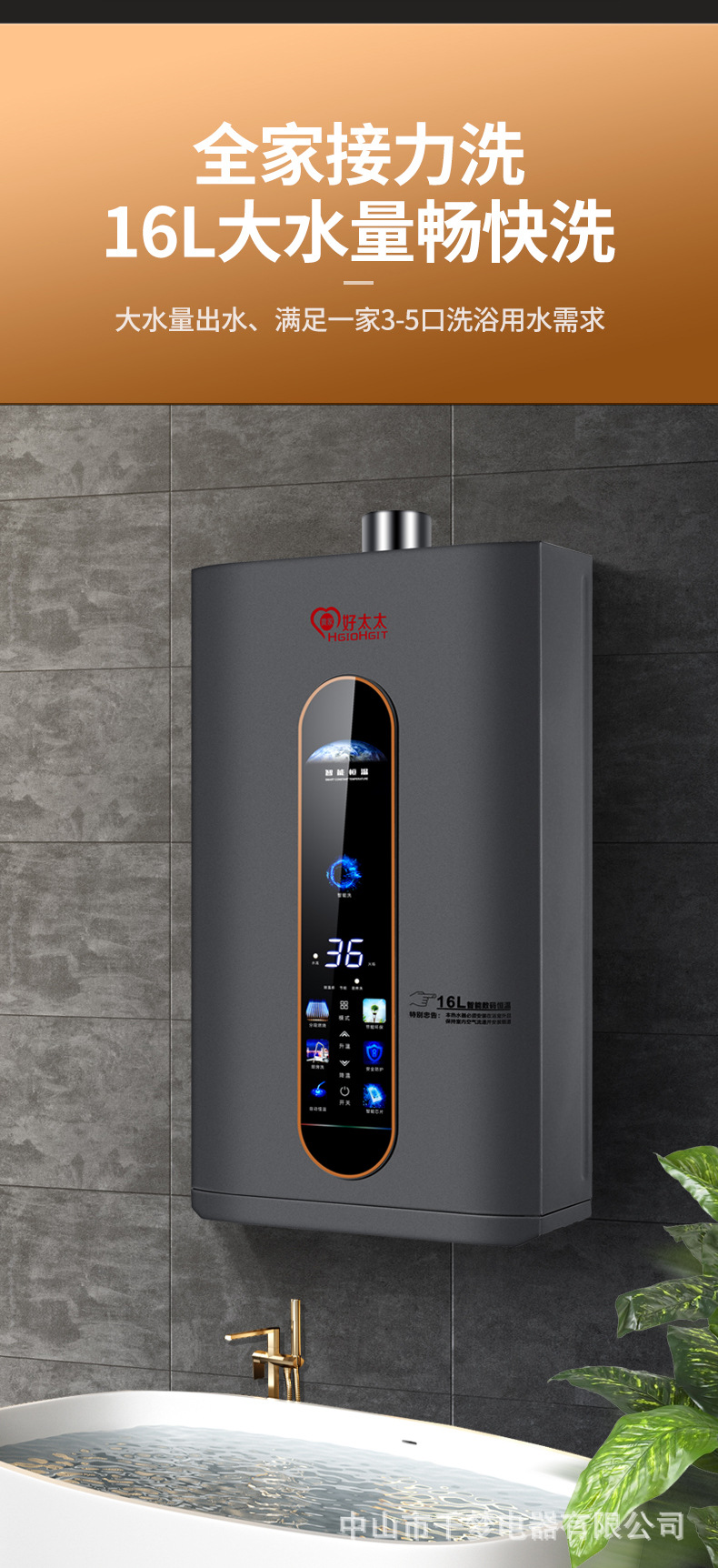 模板名称: 好太太燃气热水器16升零冷水恒温热水器强排式天然气热水器