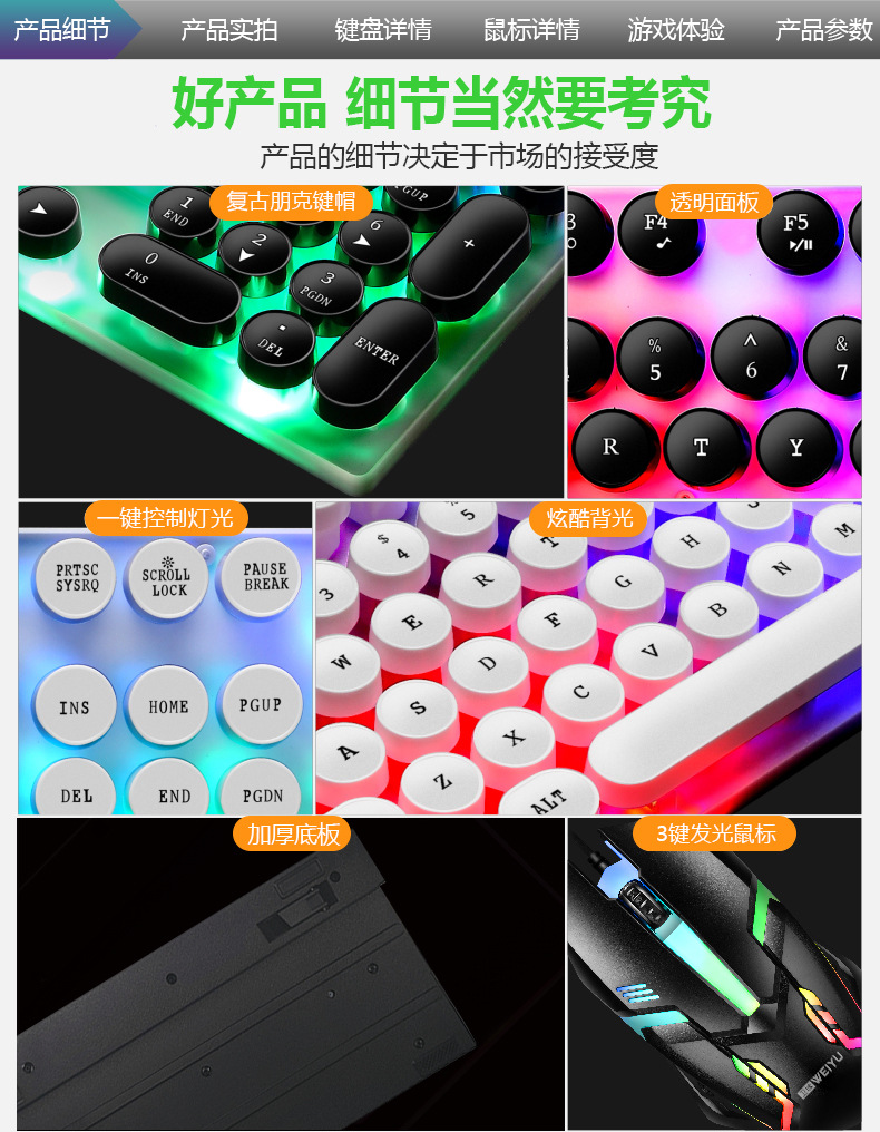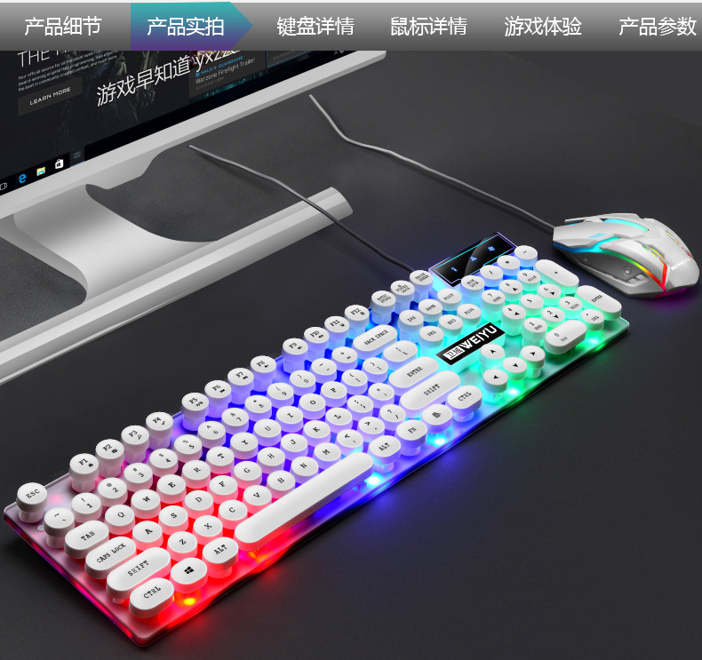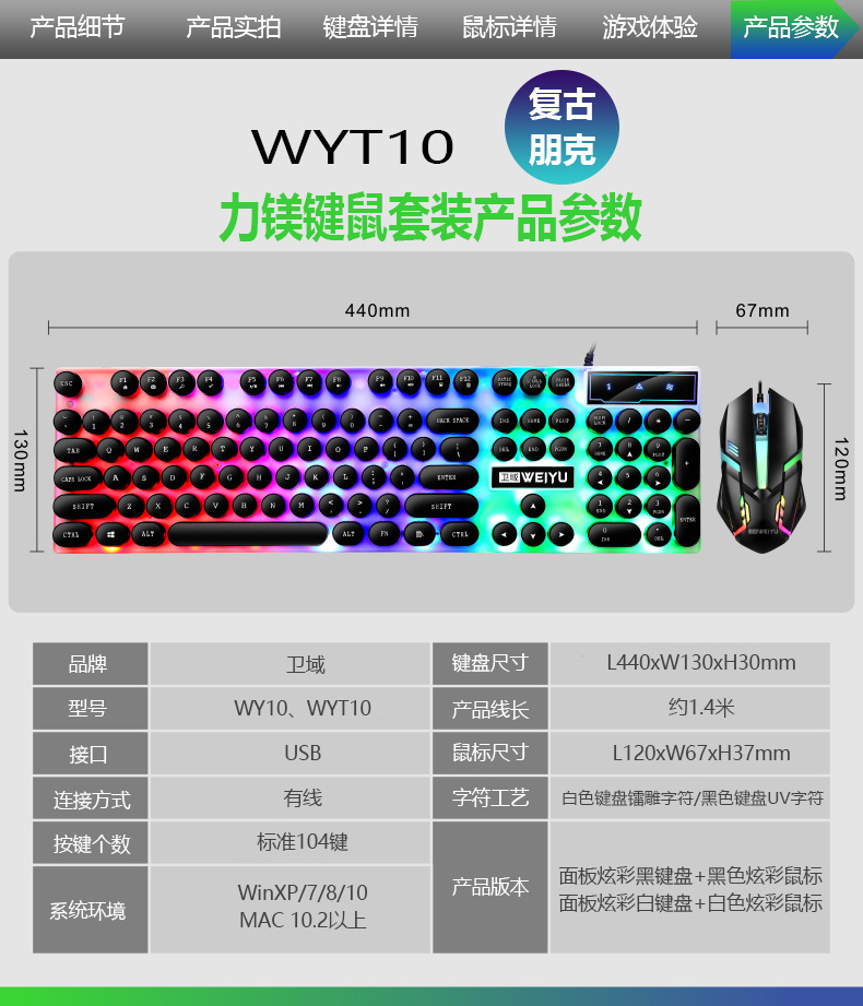 模板名称: 朋克混彩发光手感键盘有线游戏电竞办公笔记本卫域WYT10键盘